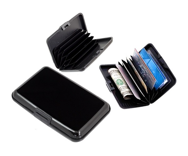 Ανθεκτικό πορτοφόλι πιστωτικών καρτών κατασκευασμένο από αλουμίνιο και πλαστικό με προστασία από ανεπιθύμητες ασύρματες σαρώσεις. Διαθέτει 6 διαχωριστικά και clip ασφαλείας.