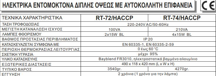 Ηλεκτρικη Εντομοπαγίδα RT-52/HACCP με Κολλητική Επιφάνεια.220-240V AC Κωδικός: 76409